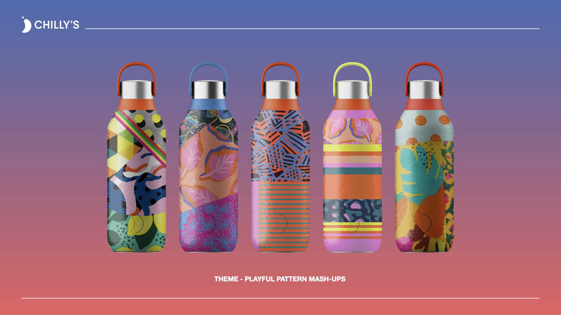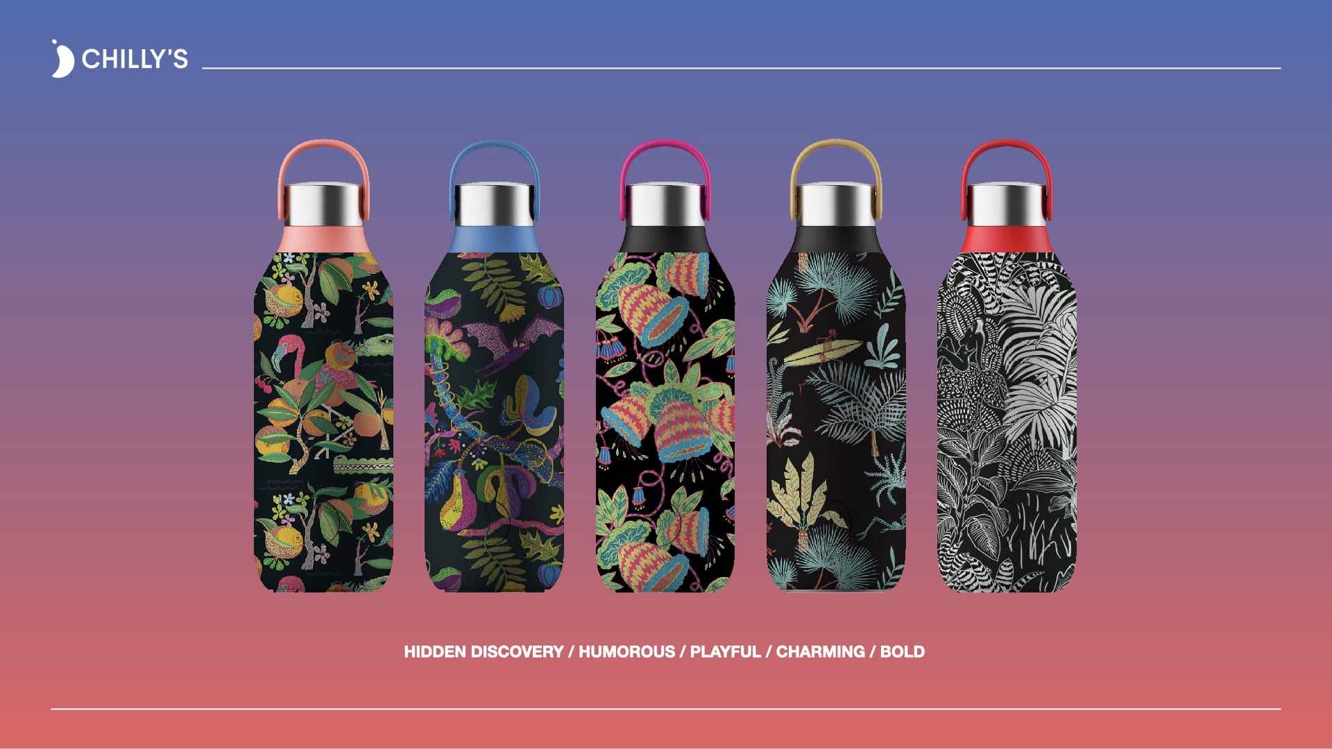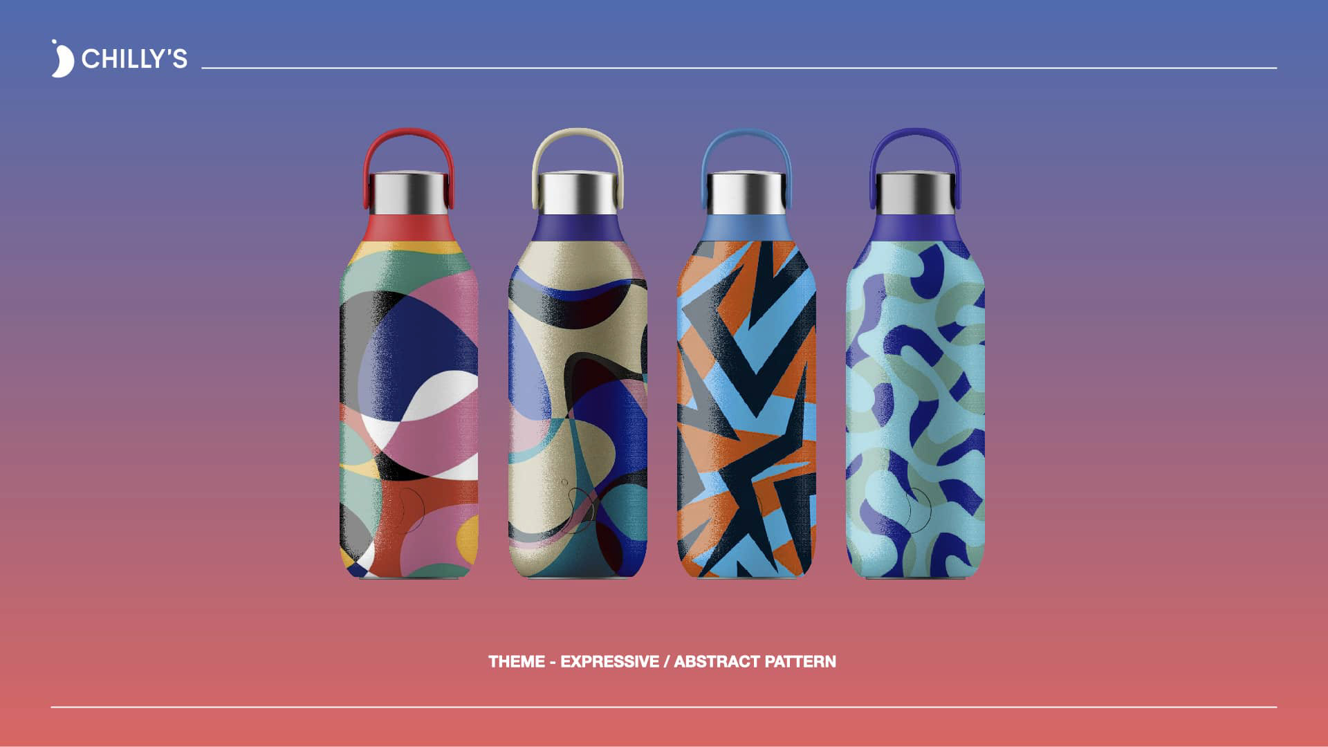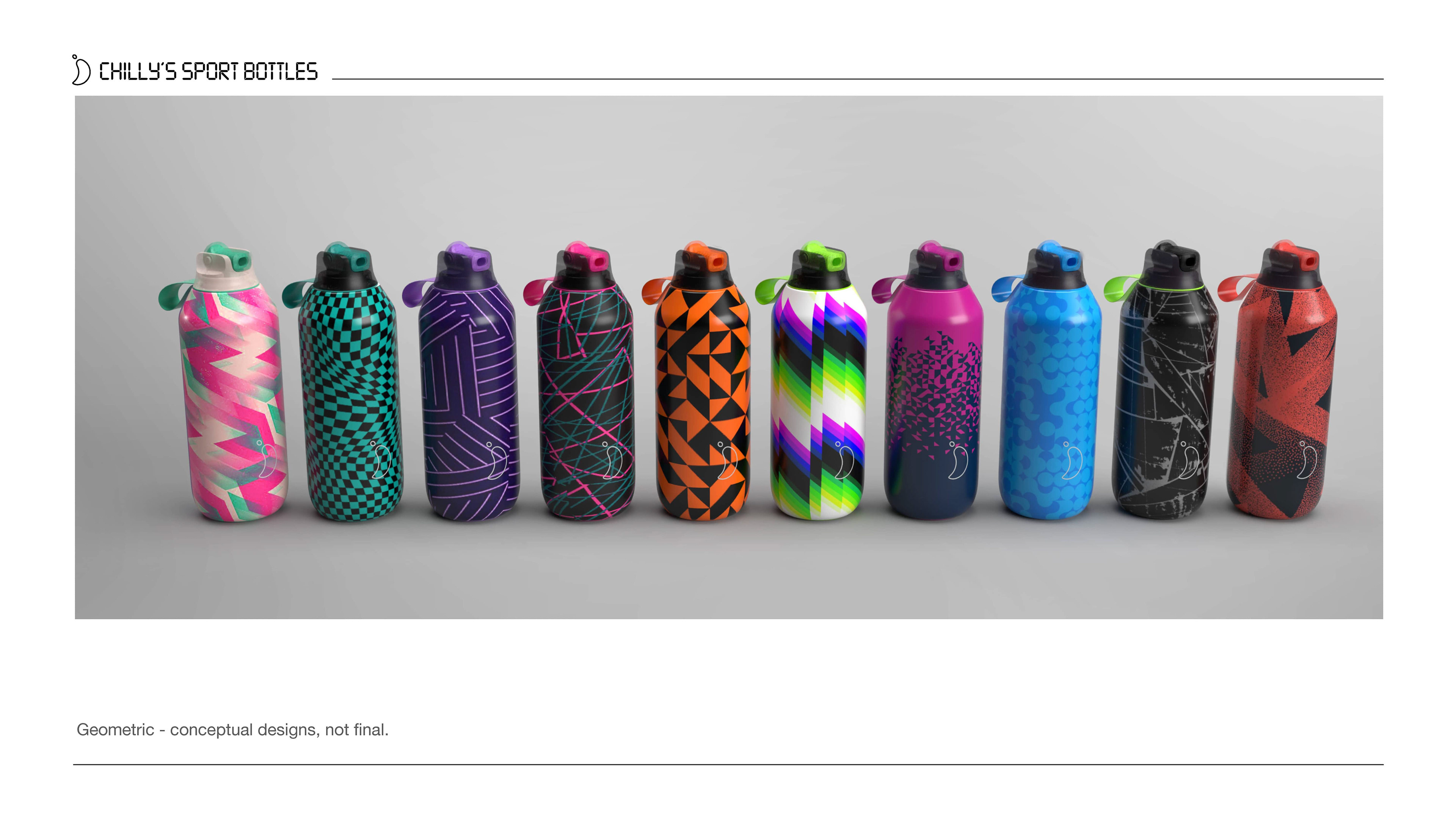 Chilly's is a leading brand in sustainable, reusable water bottles. Since its founding in 2010, the reusable water bottle market has become oversaturated with low-cost knockoffs and imitative products. This project aimed to elevate the brand's graphic print design by creating a distinctive and ownable aesthetic while establishing fresh directions for future growth. Through market and consumer research, three key growth opportunities were identified, leading to a structured, top-down tiered approach to the product range. This strategy expanded Chilly's consumer base and unlocked new distribution channels.