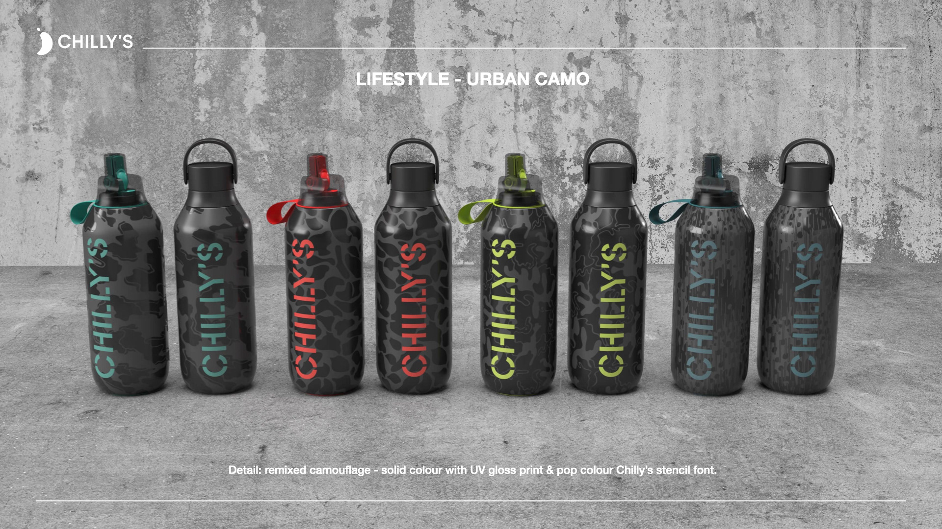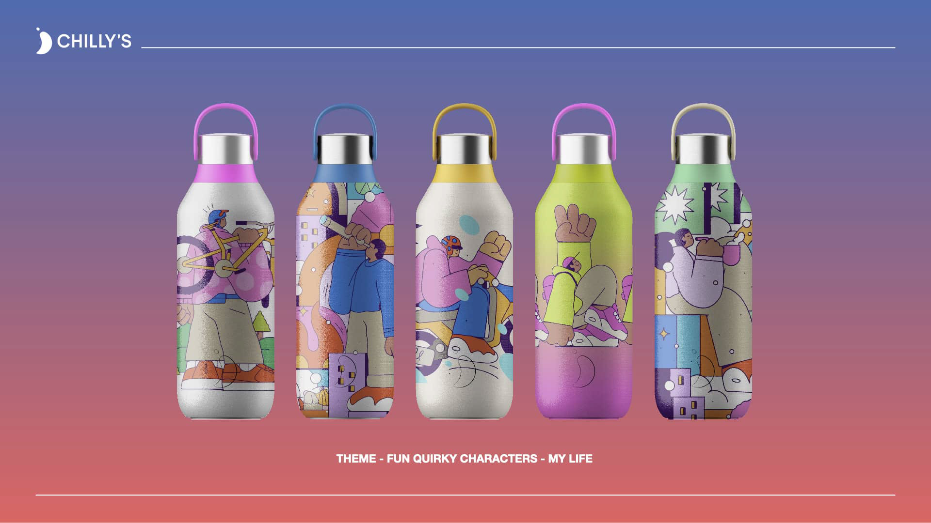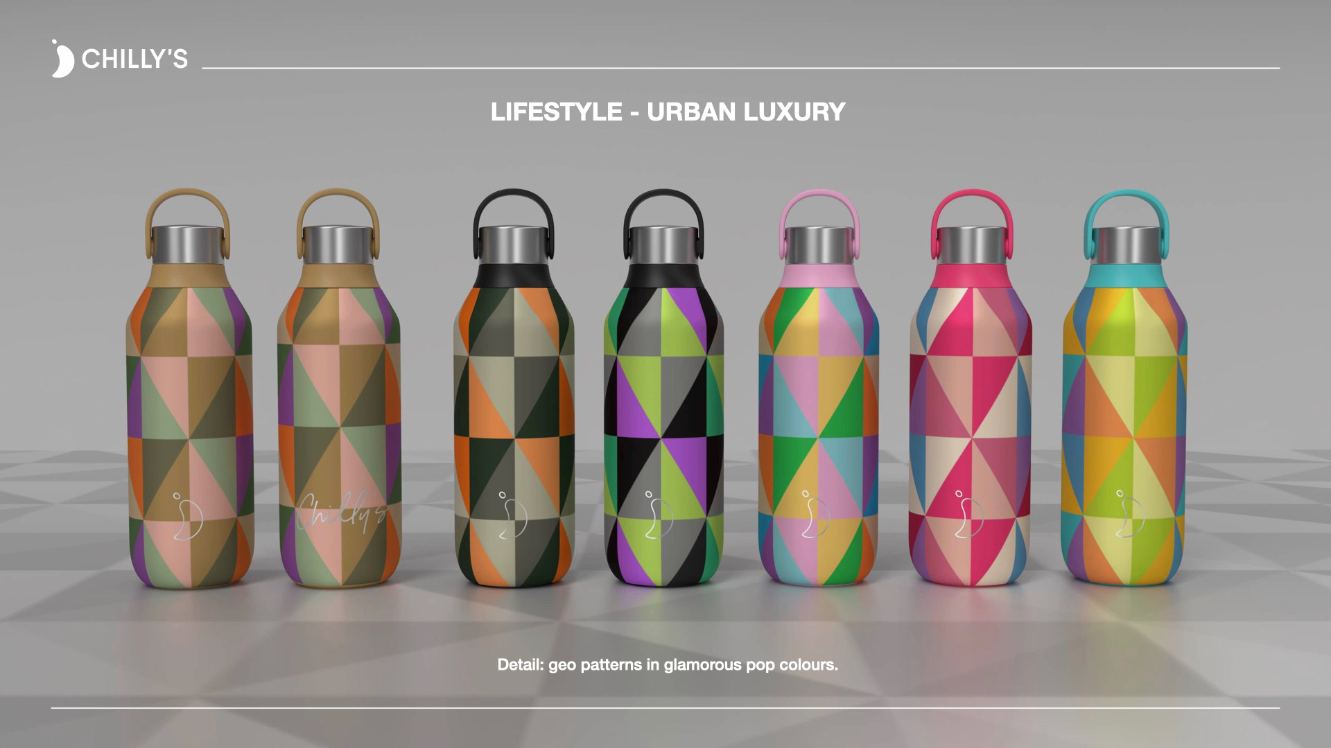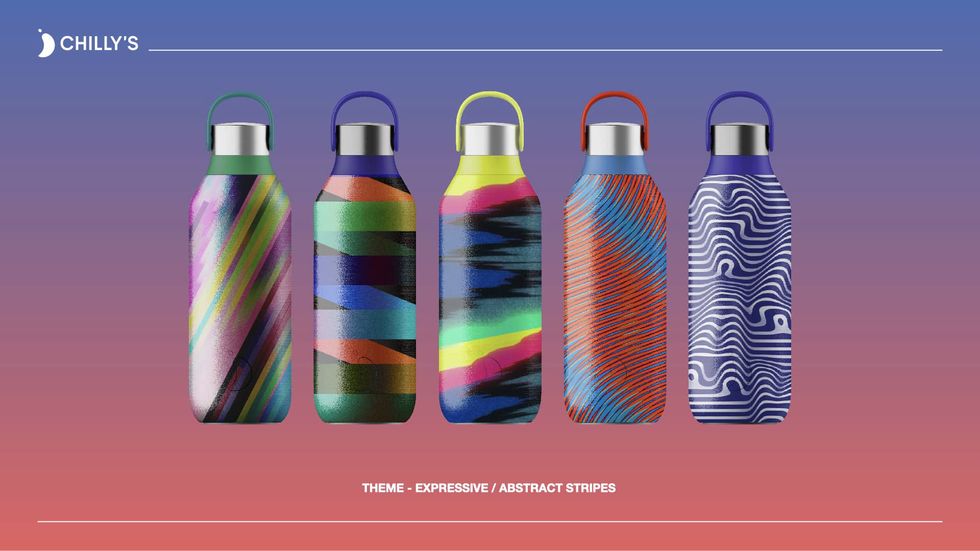 Chilly's is a leading brand in sustainable, reusable water bottles. Since its founding in 2010, the reusable water bottle market has become oversaturated with low-cost knockoffs and imitative products. This project aimed to elevate the brand's graphic print design by creating a distinctive and ownable aesthetic while establishing fresh directions for future growth. Through market and consumer research, three key growth opportunities were identified, leading to a structured, top-down tiered approach to the product range. This strategy expanded Chilly's consumer base and unlocked new distribution channels.