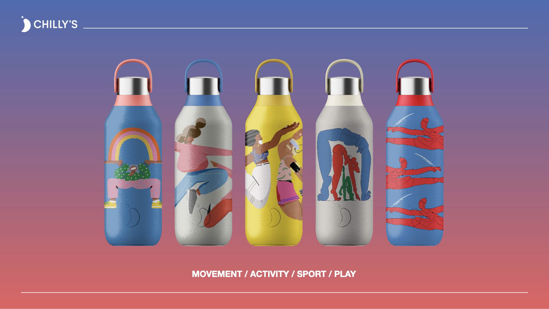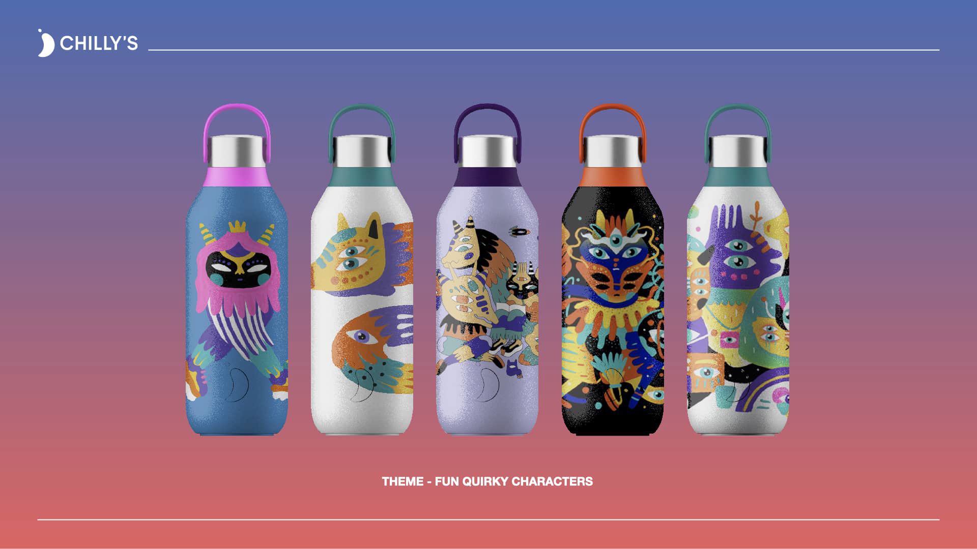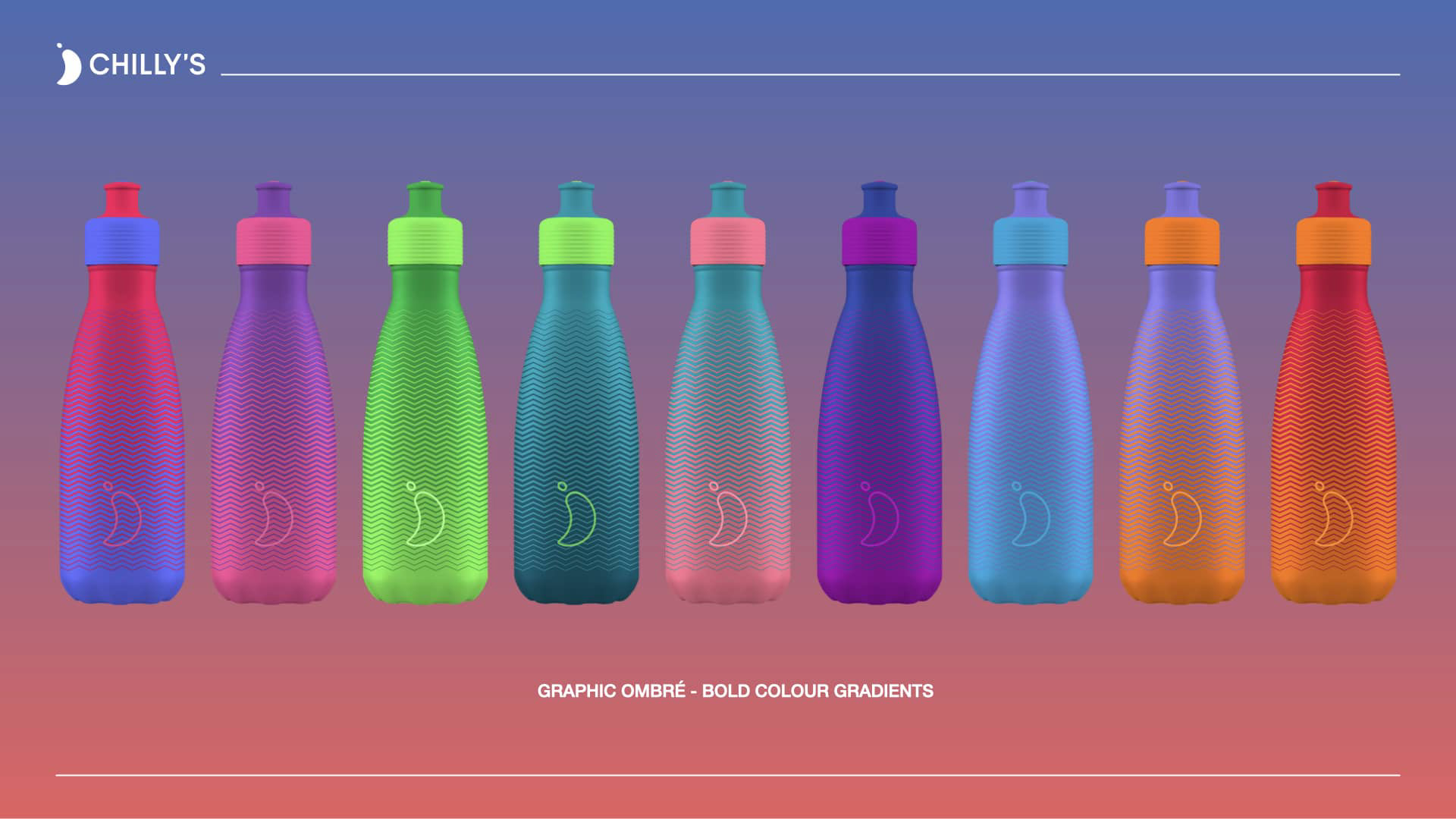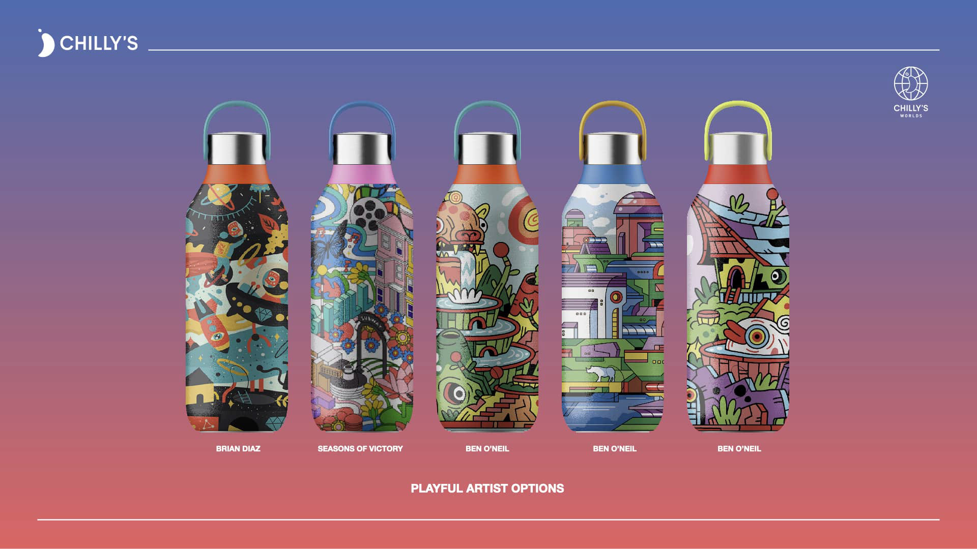 Chilly's is a leading brand in sustainable, reusable water bottles. Since its founding in 2010, the reusable water bottle market has become oversaturated with low-cost knockoffs and imitative products. This project aimed to elevate the brand's graphic print design by creating a distinctive and ownable aesthetic while establishing fresh directions for future growth. Through market and consumer research, three key growth opportunities were identified, leading to a structured, top-down tiered approach to the product range. This strategy expanded Chilly's consumer base and unlocked new distribution channels.