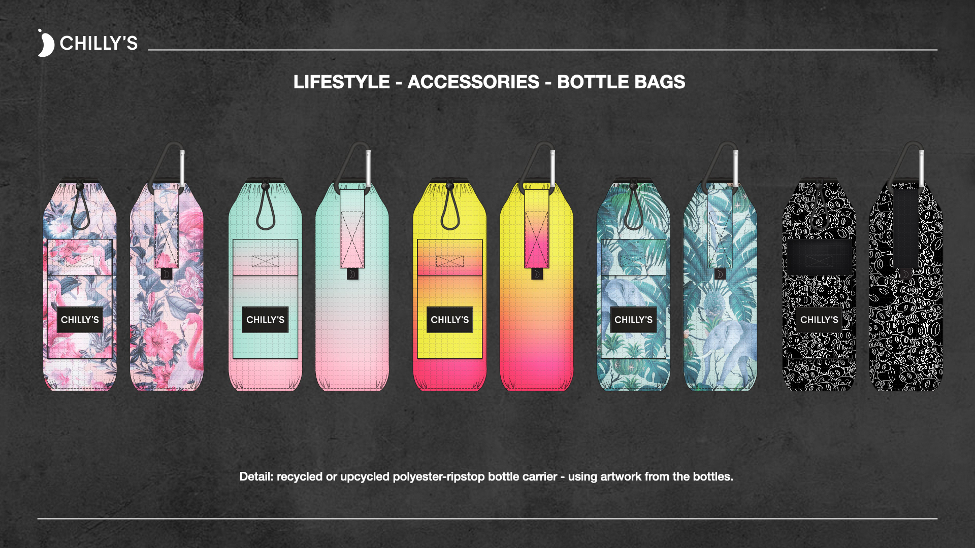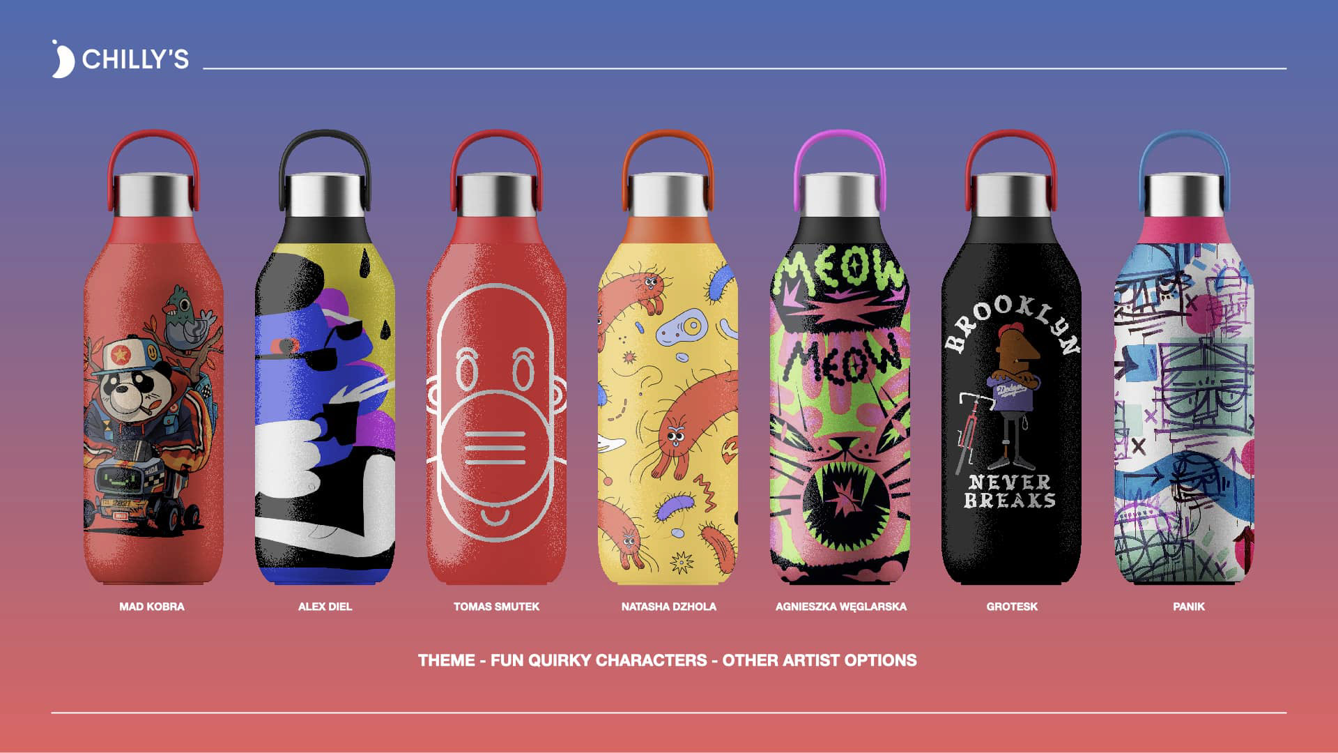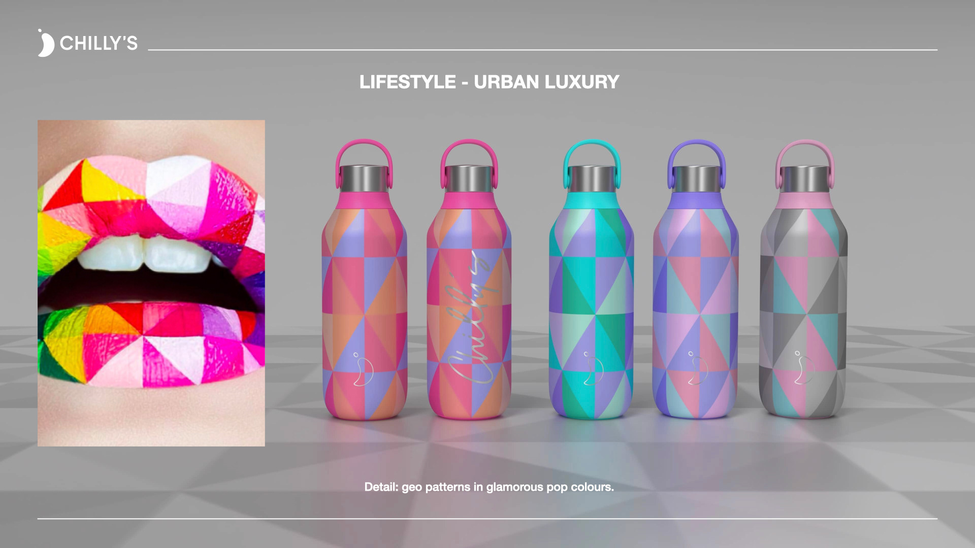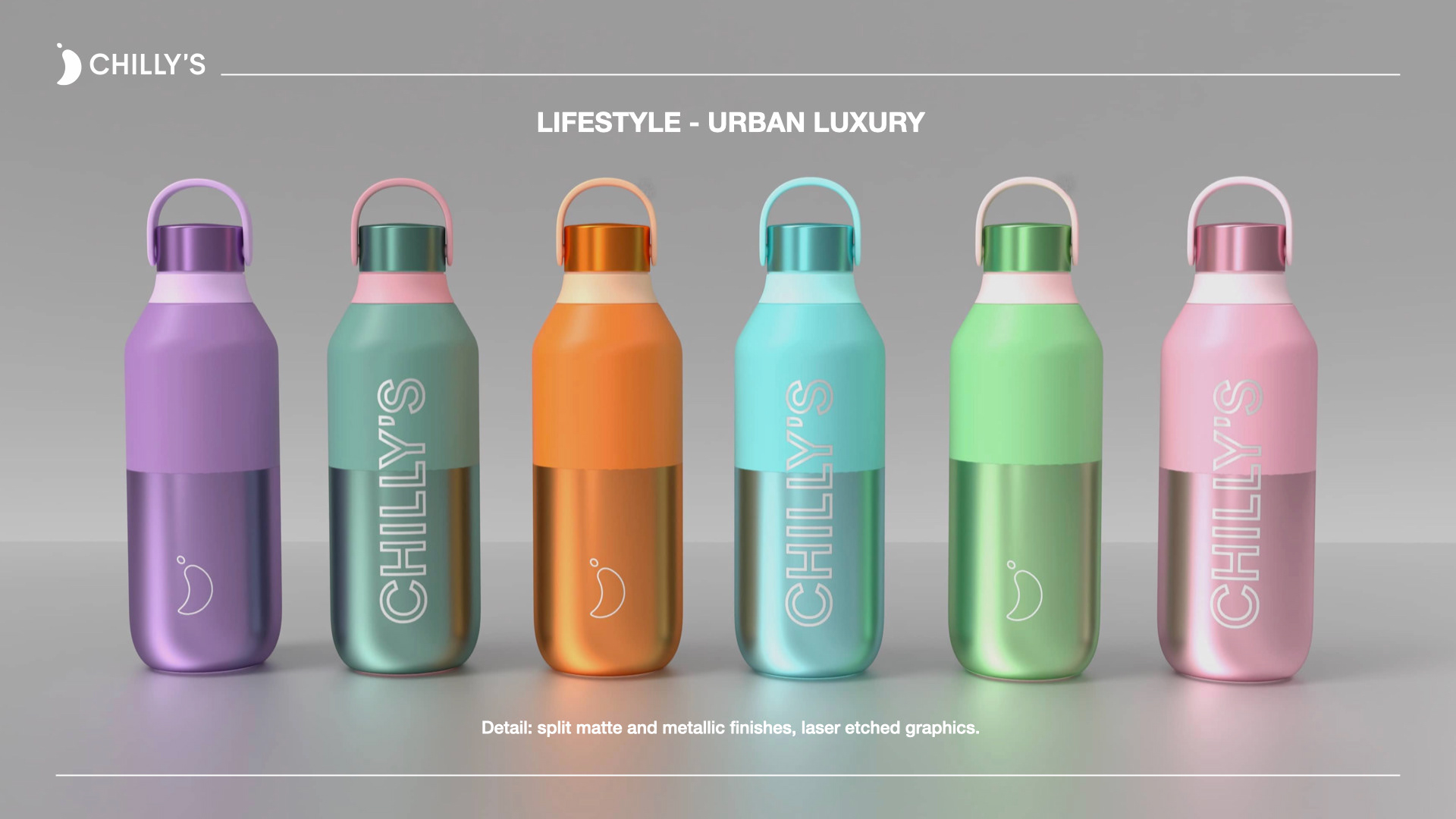 Chilly's is a leading brand in sustainable, reusable water bottles. Since its founding in 2010, the reusable water bottle market has become oversaturated with low-cost knockoffs and imitative products. This project aimed to elevate the brand's graphic print design by creating a distinctive and ownable aesthetic while establishing fresh directions for future growth. Through market and consumer research, three key growth opportunities were identified, leading to a structured, top-down tiered approach to the product range. This strategy expanded Chilly's consumer base and unlocked new distribution channels.