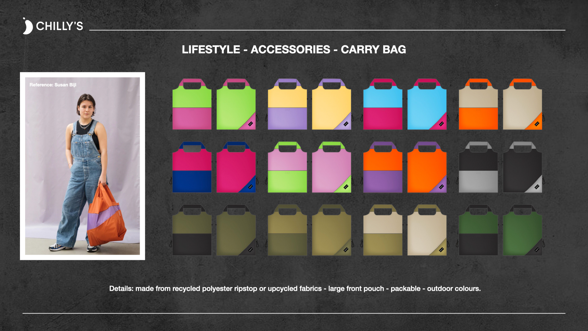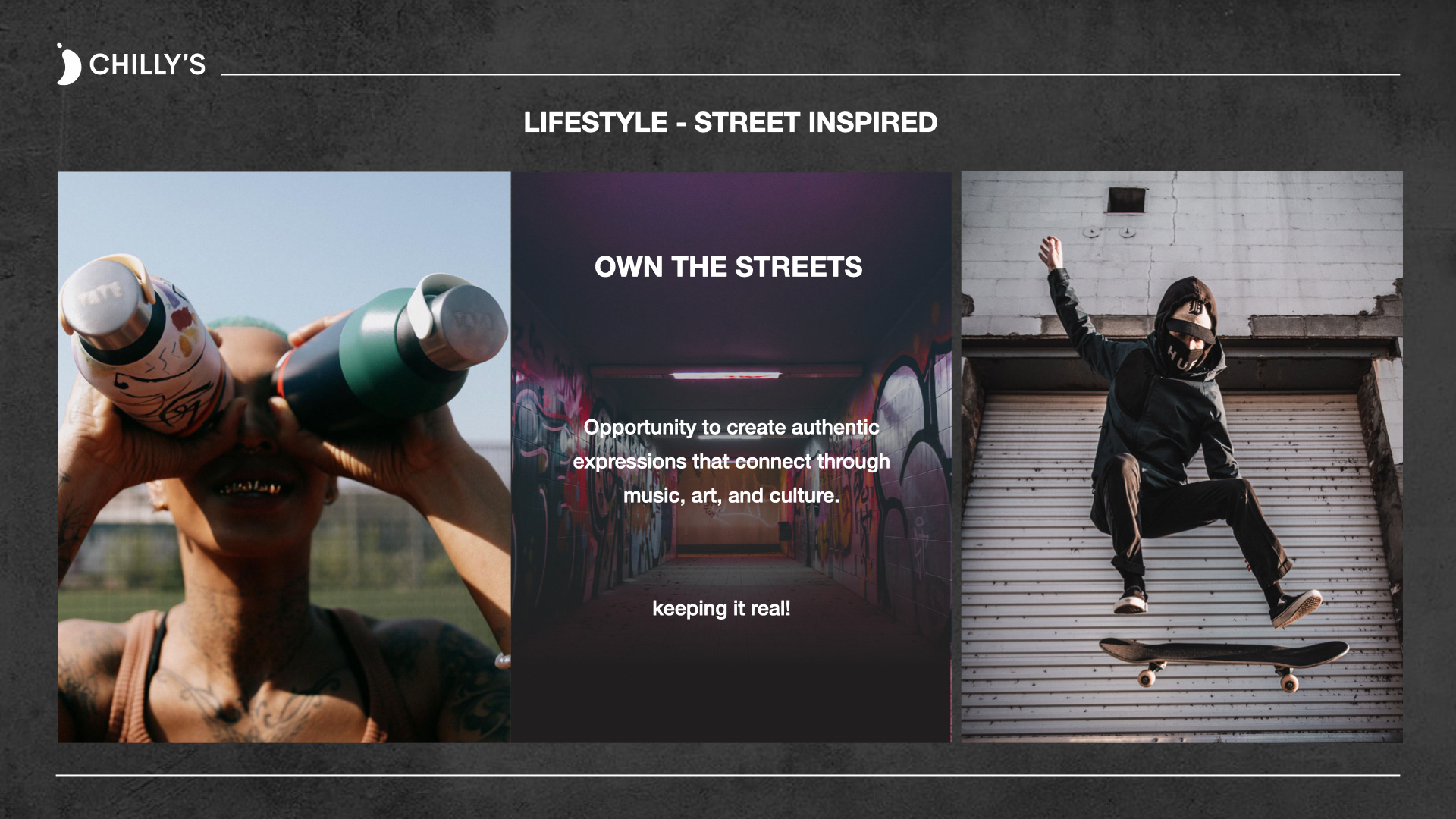 Goal: create design solutions for the active Chilly's consumer that are energetic and vibrant.